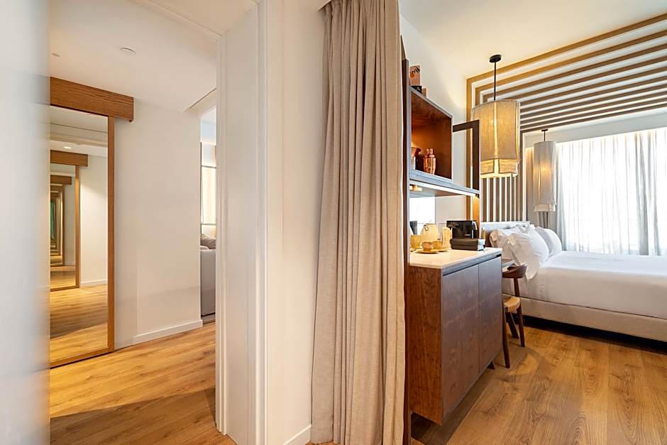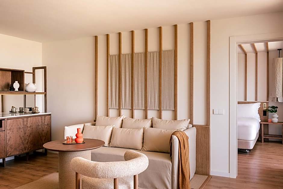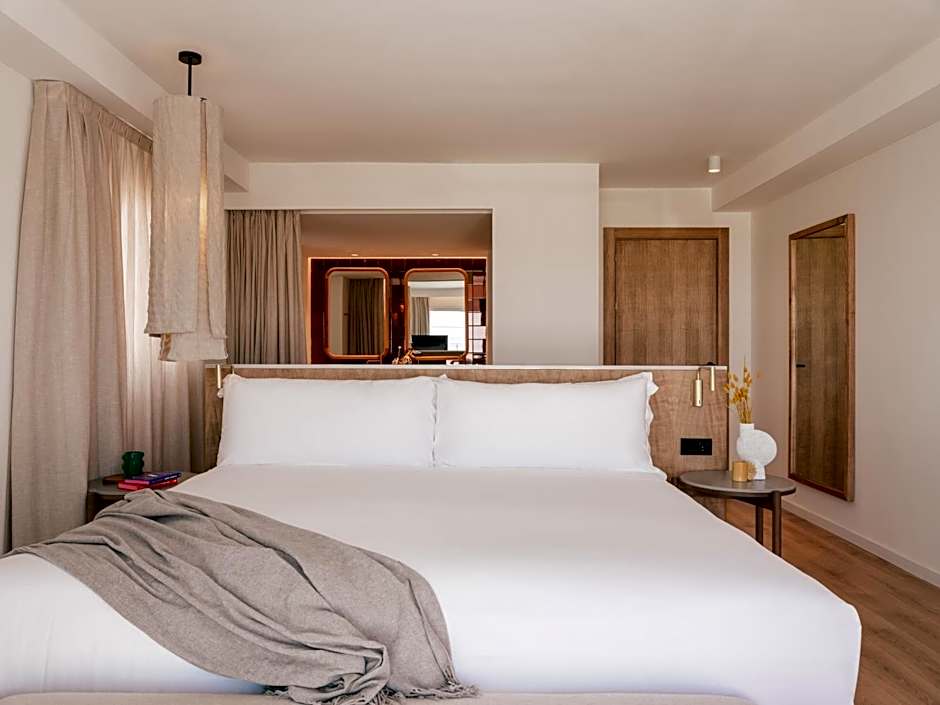Junior Suite with balcony and views of the gardens. 47 m2. The room provides a king-size bed, a lounge area with a sofa-bed and a bathroom with a rain shower and luxury amenities. Includes a TV with Chromecast, Bluetooth speaker and espresso machine with capsules. It also offers exclusive ME+ benefits and services.